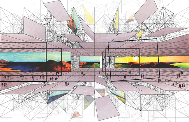 Archizoom’s No stop city is a proposed dystopian conclusion to consumer-driven architectural development. In No stop city, the box store is the template applied to the entirety of occupiable space, resulting in the endless interior, a space that is so all-encompassing that it defines even the horizon. The project conveyed this notion of uniform regulated space in a series of drawings and installations in the nineteen sixties and seventies that expressed the group’s general discontentment with the homogenizing effects that capitalism was having on the world around them. These drawings included endless architectural column grids that wash over natural landscapes, perverse depictions of consumerist products artificially populating these spaces, and dystopic depictions of the alleged gridded falseness of a system that claims to be natural. What is perhaps most disconcerting is that the group insists that we are living in this world and not even aware of it. This is perhaps the most significant attribute of No-Stop City. Because it never ends, it would be impossible to recognize one was living in it.